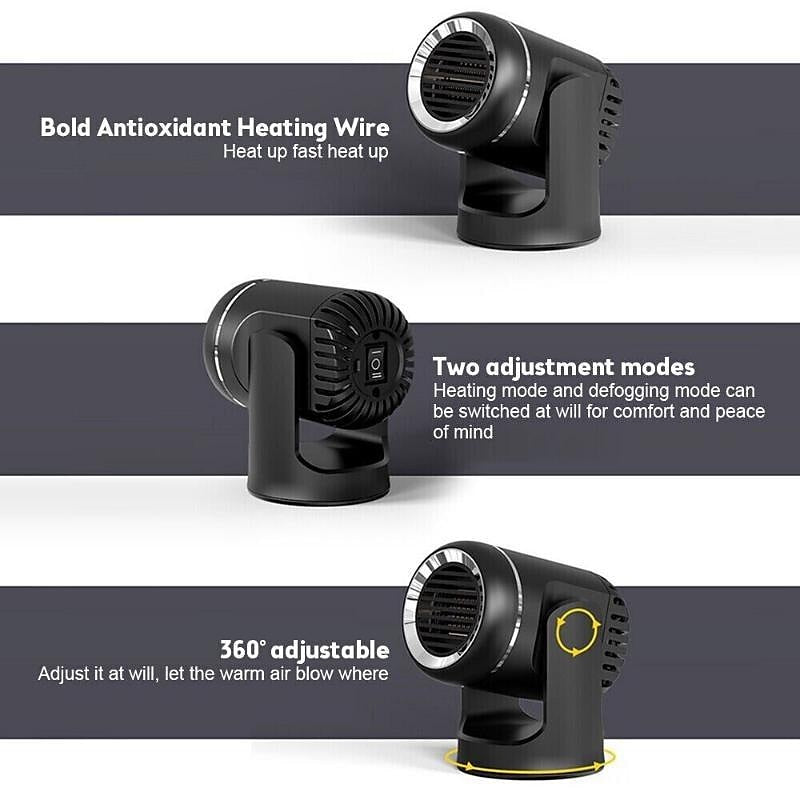 3. Adjustable Wind Direction: The car heater features an air outlet that allows you to adjust the wind direction up and down. as well as rotate it 360 degrees for personalized comfort.