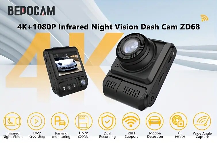 4K Dash Camera Infrared Night Vision Car DVR WIFI External GPS 2.5k1080p Dashcam Vehicle For Android Auto Video Recorder 2024 - $113.99