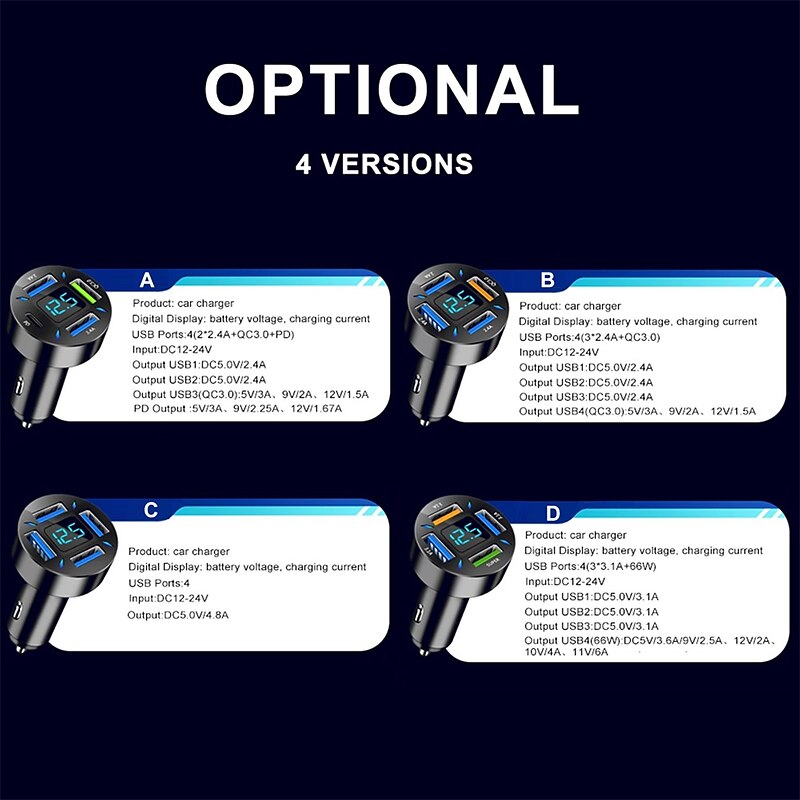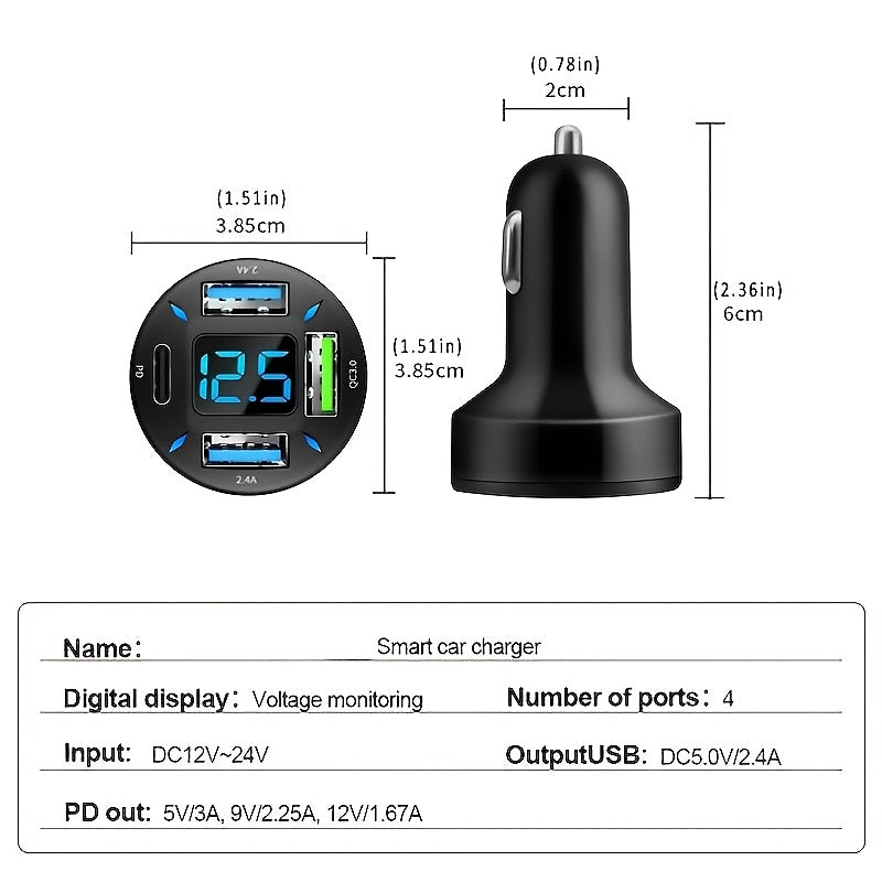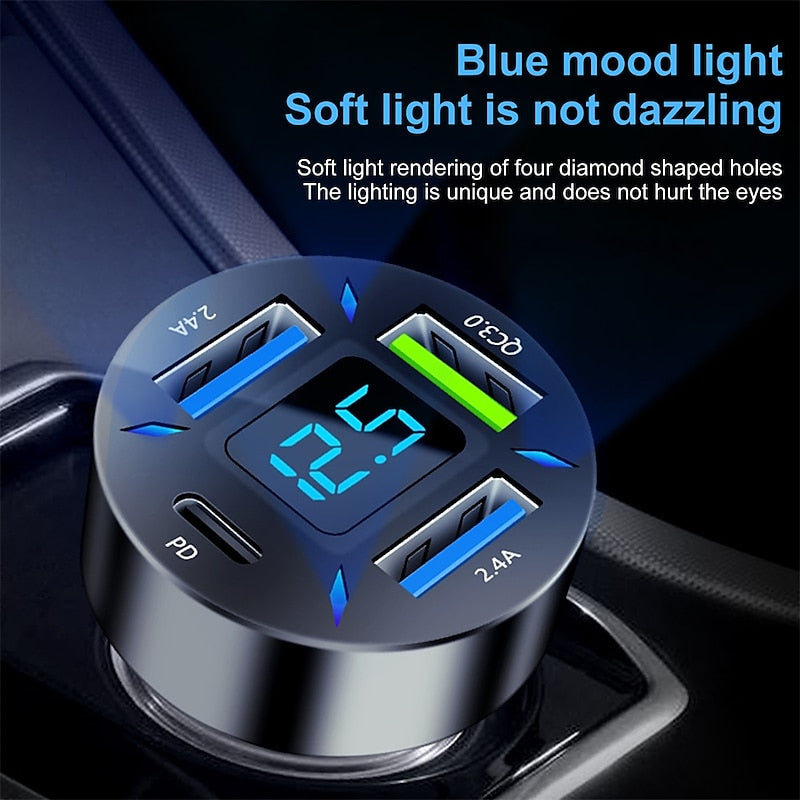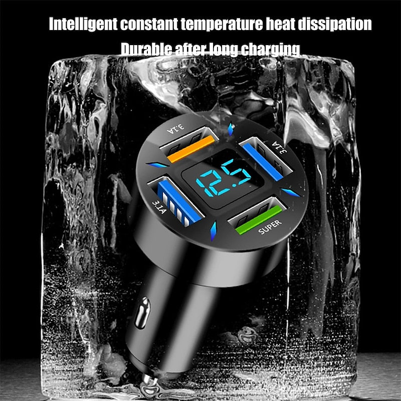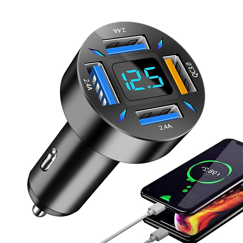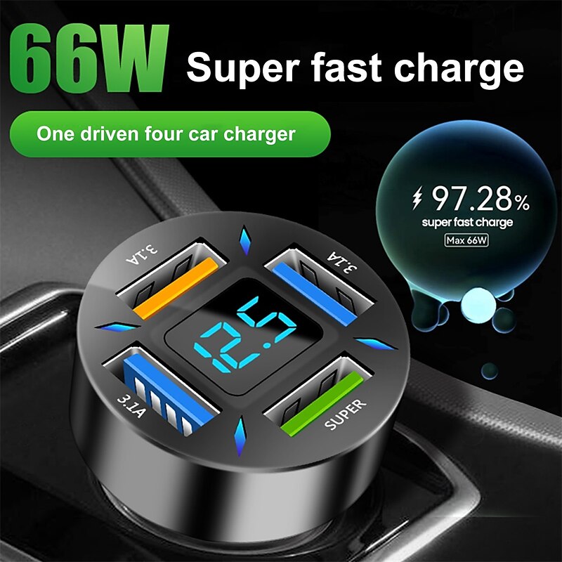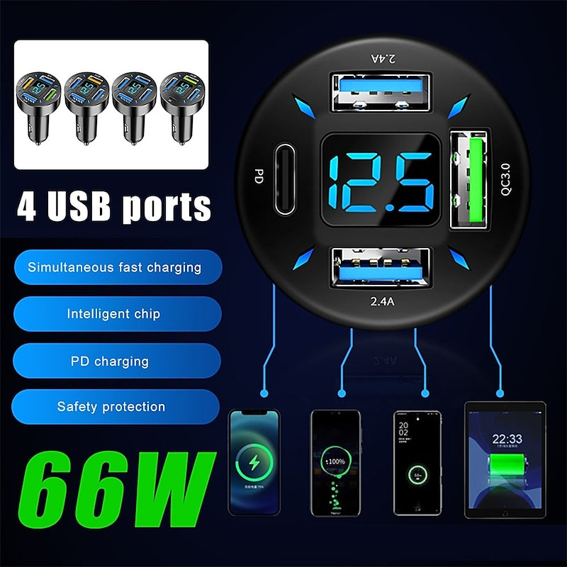 66W 4 Ports Fast Charging Adapter 12-24V LED Digital Display Portable Car Phone Charger Adapter For iPhone Huawei Xmi Samsung 2024 - GBP £7