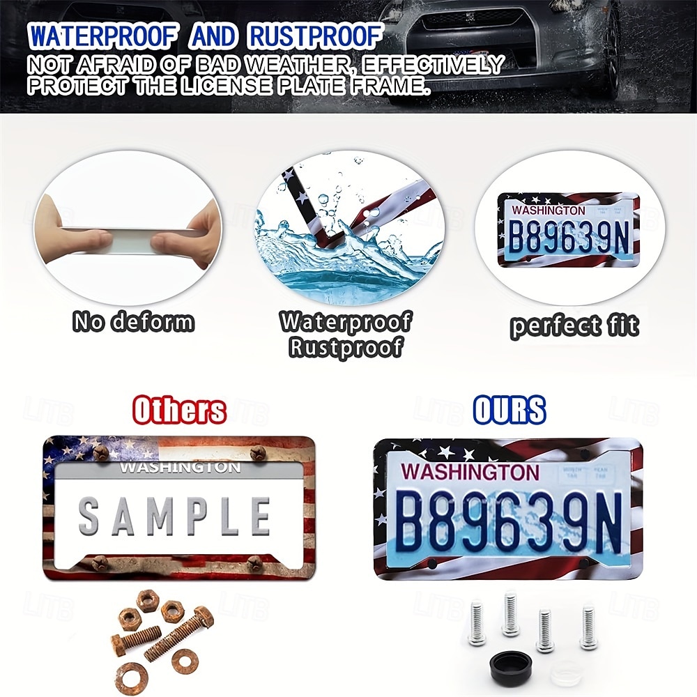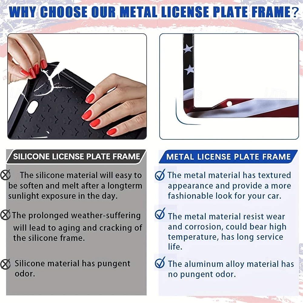 American Flag License Plate Frame Holder Universal Aluminum Matte Stripe US Flag Gloss Car Plate Frame Covers With Free Screws Fasteners Caps for US L