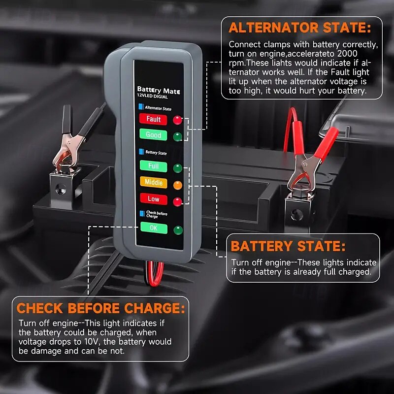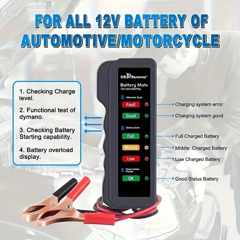 Automobile 12V Battery Tester Motorcycle Battery Tester 2024 - $11.99