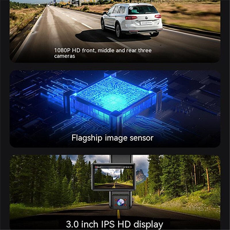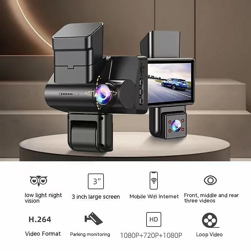 Car Recorder Three Records Hd 1080p Wifi Infrared Night Vision Ultra-wide Angle Three Lens Car Recorder 2024 - $44.99