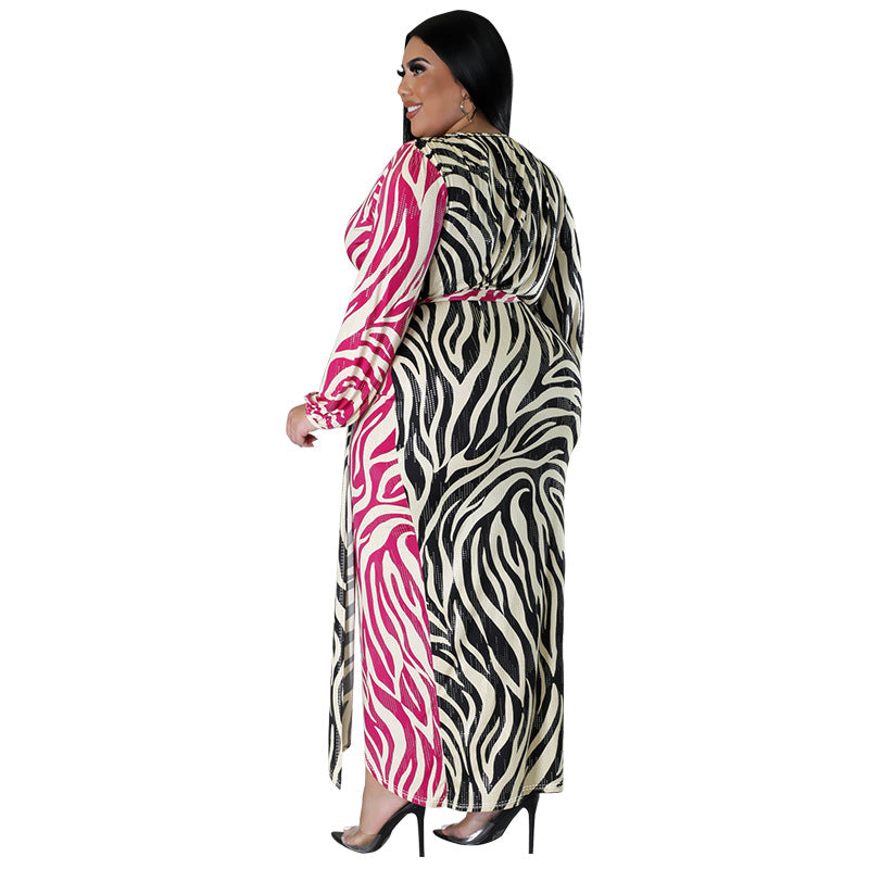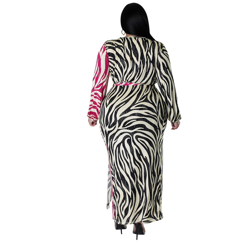 Printed Two-Tone Patchwork Strap Irregular Sexy Overnight Dress