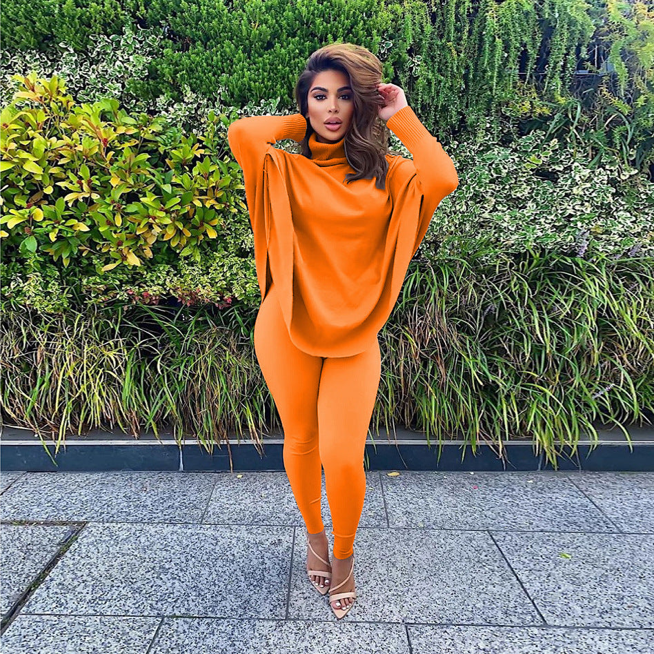Winter Solid Color Bat Long-Sleeved Two-Piece Fashion Casual Suit