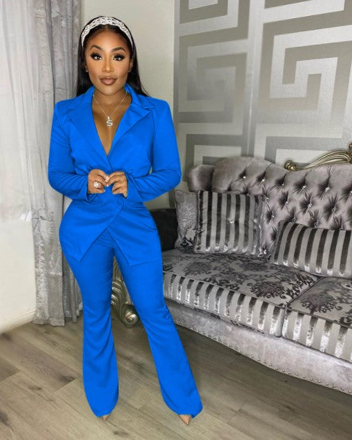 Europe And The United States Fashion Temperament Ol Wind Small Suit Solid Color Two-Piece Set
