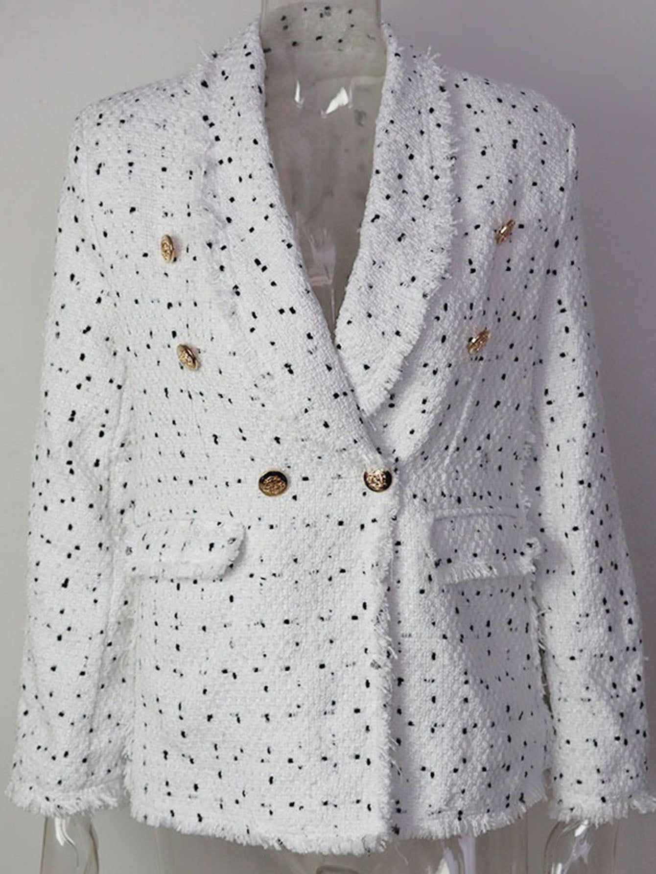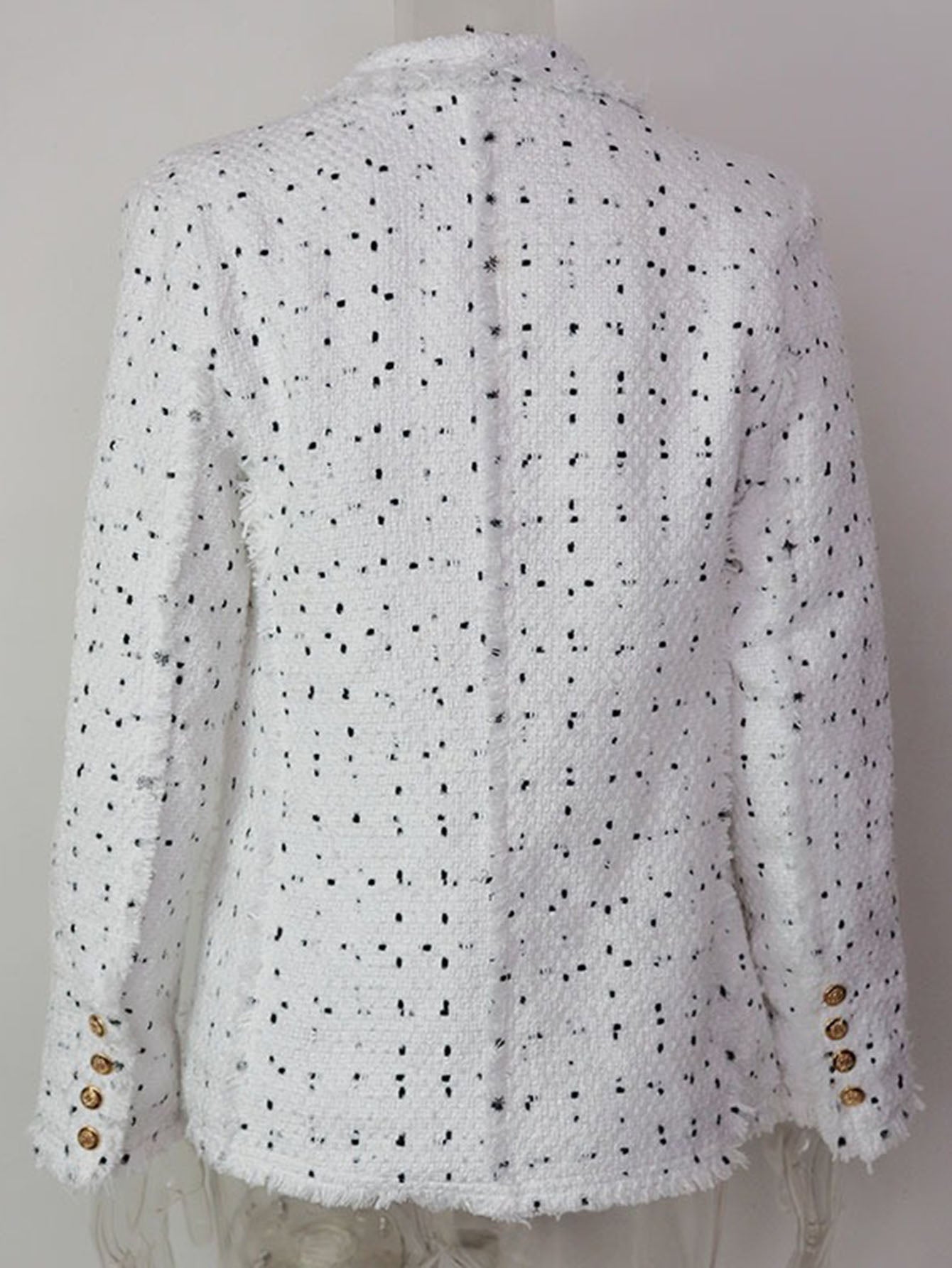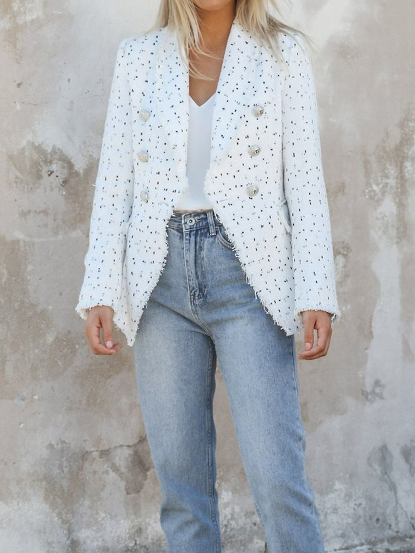 We're glad you've clicked on our new blazer jacket as we're really into its elegant vibes! The lapel and long sleeve cut make this a great choice for any stylish girl.