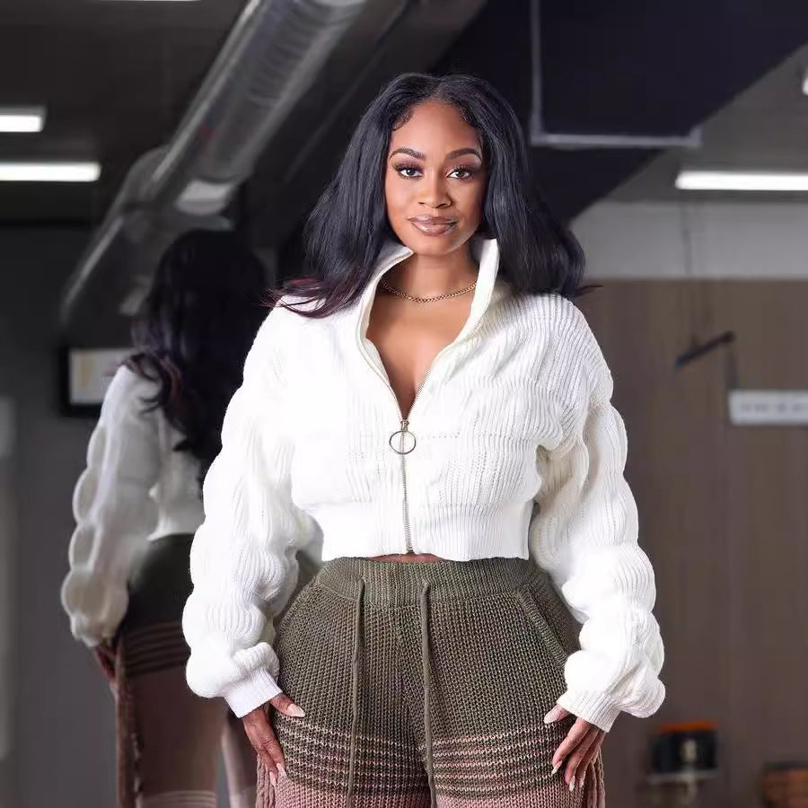 European And American Women's Cross-Border Loose Lotus Root Lantern Sleeve Sweater With Threaded Cuffs