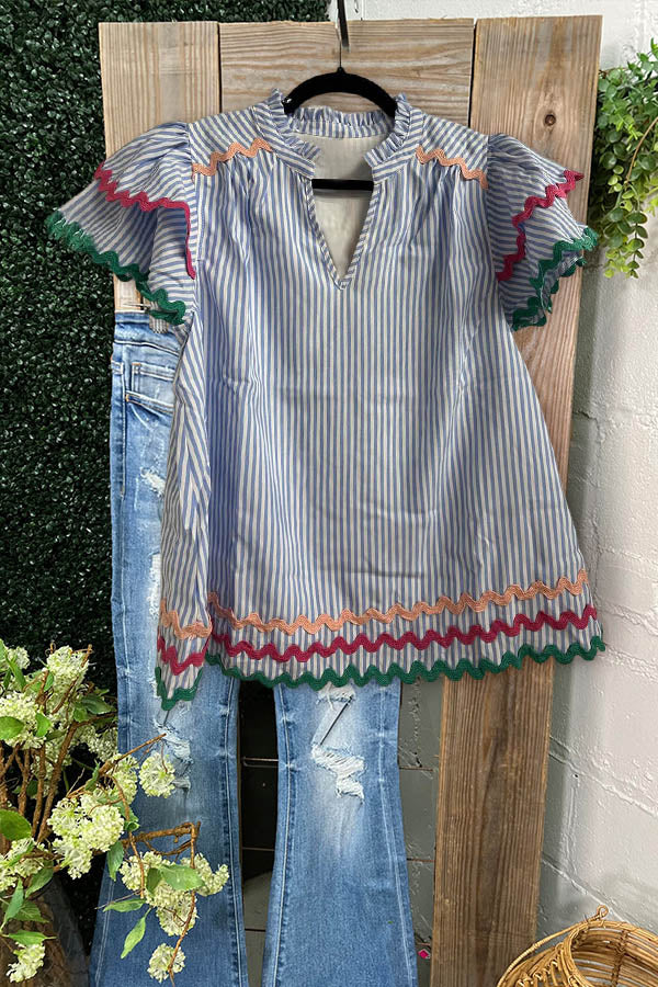 We're glad you've clicked on our new western top as we're really into its pretty vibes! The v neck and short sleeve cut make this a great choice for any stylish girl.