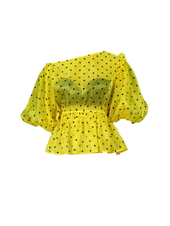 Sexy perspective sloping shoulder top with exaggerated bubble sleeves