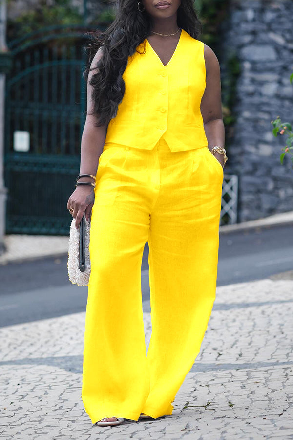 Stay on trend this season in our new stylish, v neck set. We especially love the solid color fabric and think this piece will be a new favorite in your closet!