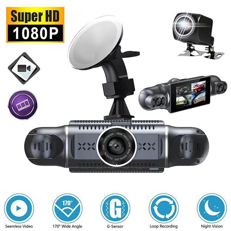 W2 1080p New Design / HD / 360° monitoring Car DVR 170 Degree Wide Angle 3 inch IPS Dash Cam with WIFI / Night Vision / G-Sensor 8 infrared LEDs Car R