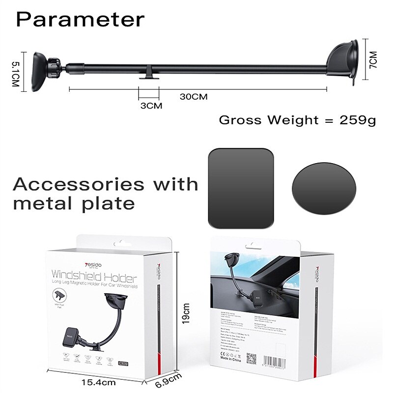 Windshield Car Phone Mount Upgraded Long Arm Gooseneck Cell Phone Holder for Car Truck Dashboard Phone Holder with Strong Suction Cup Compatible with