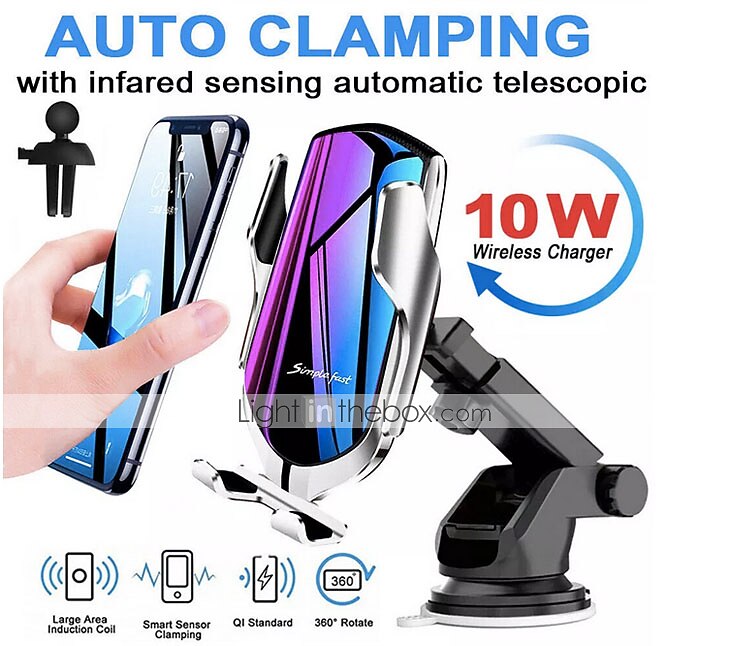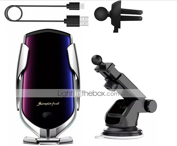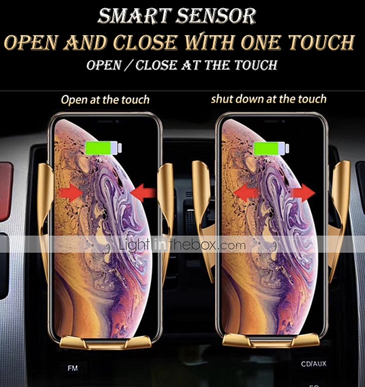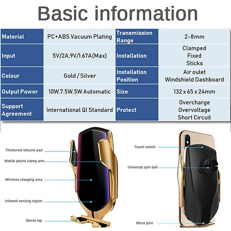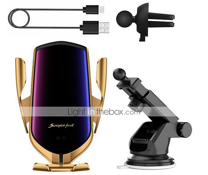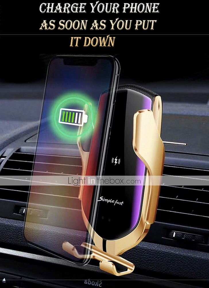Wireless Car Charger Mount R2 Car Automatic Induction Charging Mobile Phone Holder Suction Cup Air Outlet 2 In 1 Fast Charging Holder for iPhone 13/13