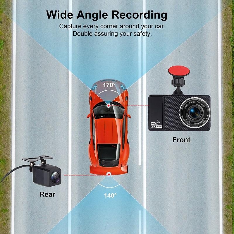 X18 PRO 2160P New Design / HD / with Rear Camera Car DVR 170 Degree Wide Angle 3 inch IPS Dash Cam with WIFI / Night Vision / G-Sensor 4 infrared LED